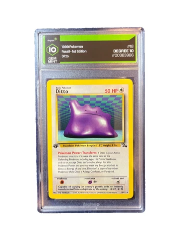 Pokemon 1st Edition Ditto Non Holo 18/62 Fossil Degree 10 Gem Mint