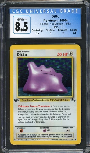 Pokémon TCG 1999 Ditto Holo Rare Card Fossil 3/62, WOTC 1st Edition PSA 8