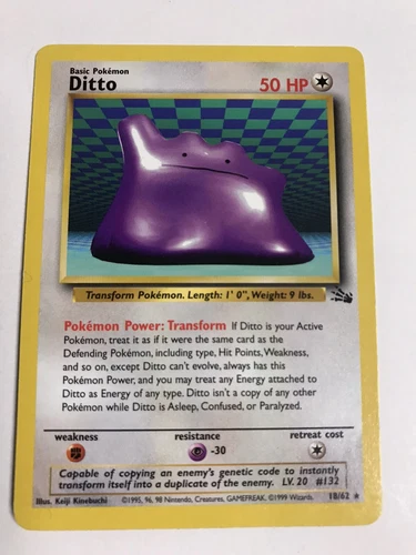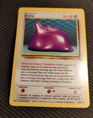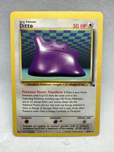Ditto 1999 Pokémon Fossil 18/62 Wizards Rare Vintage Pokemon Non Holo