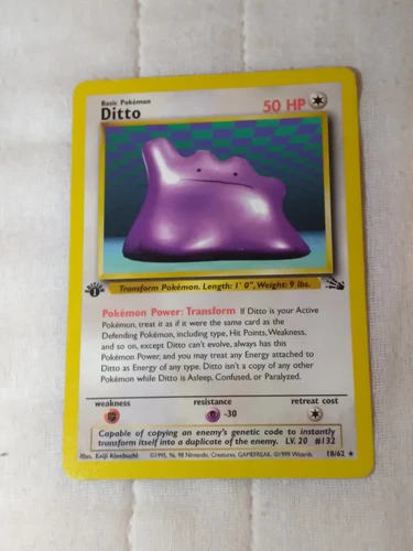 Ditto 18/62 1st Edition Fossil Pokemon Card Rare First Edition DMG