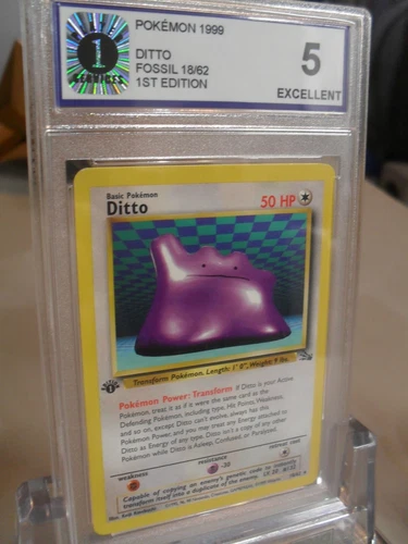 P1 Graded 5 Ditto Fossil 18/62 1st edition Rare Pokemon Card