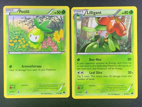 Petilil 7/122 + Lilligant 8/122 Rare BreakPoint Pokemon Card 2016 NonHolo