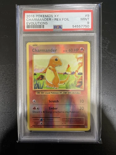 2016 POKEMON EVOLUTIONS CHARMANDER REVERSE FOIL PSA 9 MINT 9/108