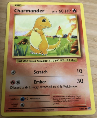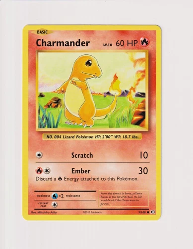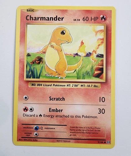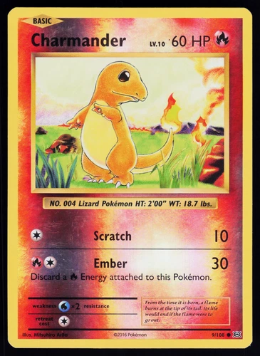 Charmander Pokemon card. Regular. 9/108. 2016. Very Good Condition.