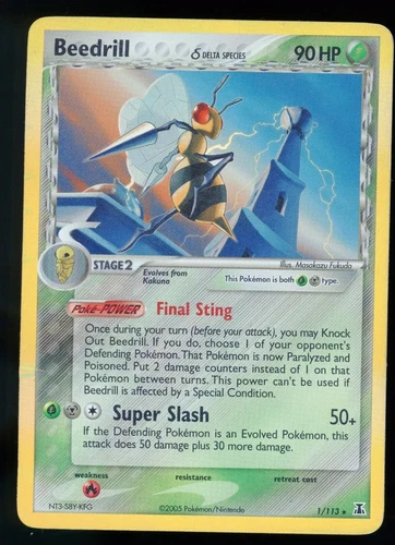 Pokemon TCG - Beedrill 1/113 Holo Rare - 2005 EX Delta Species - MP