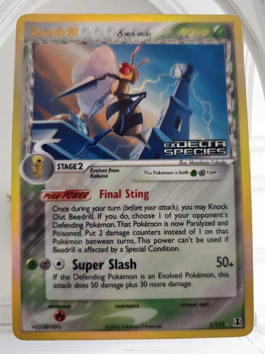 Pokemon Card - Beedrill (Delta Species) Delta Species 1/113 Reverse Holo Stamped