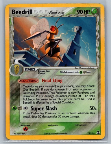 Pokemon TCG Beedrill (Delta Species) 1/113 Delta Species Reverse Holo (STAMPED)