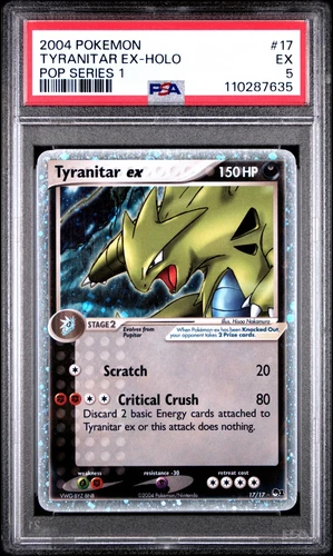 2004 Pokemon 17/17 Tyranitar Ex - Holo SWIRL Pop Series 1 PSA 5