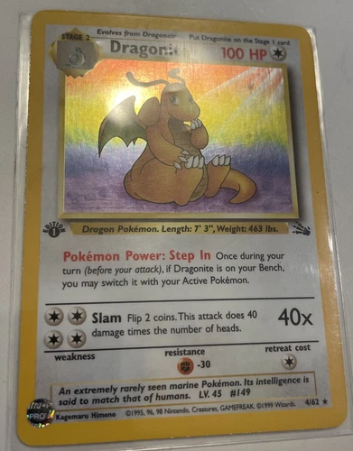 1st Edition Dragonite Holo Fossil 4/62 WOTC Pokemon Card Vintage