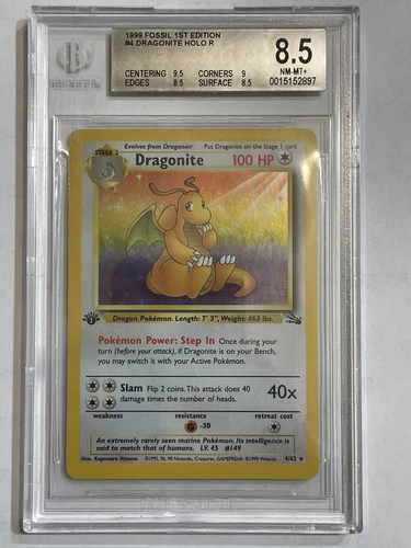 Pokémon TCG Dragonite Fossil 4/62 Holo 1st Edition Holo Rare Beckett 8.5 NM-MINT