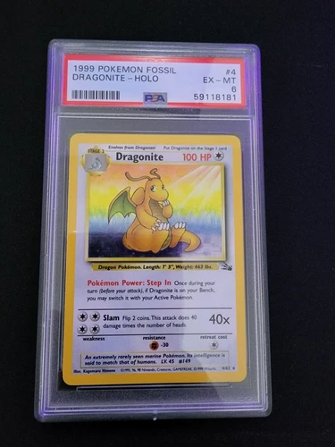 1999 Pokemon Fossil Holo Dragonite 4/62 PSA 7