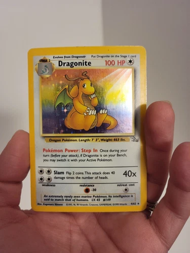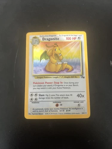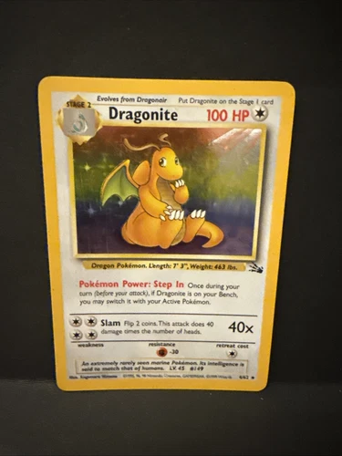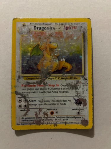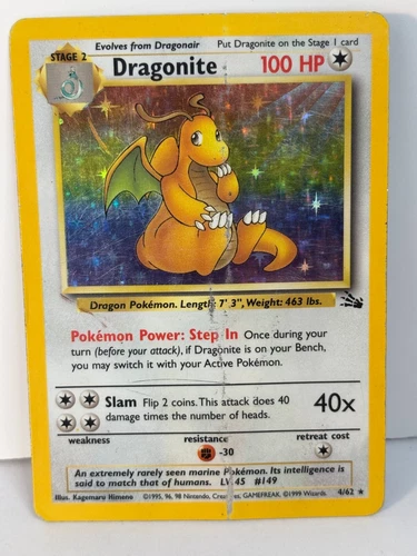 Heavily Played, English Pokemon Holo Dragonite - 4/62 - Holo Rare - Unlimited Ed