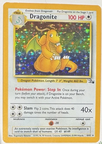 Pokemon - HOLO - Dragonite 4/62 Fossil Holo Pokémon 1999
