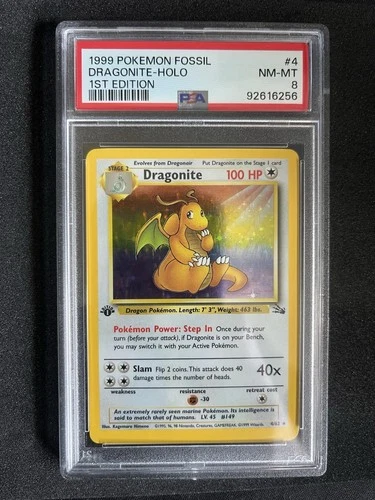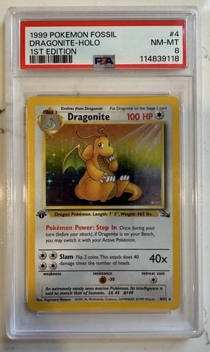 1999 Pokemon Fossil Dragonite #4/62 Holo 1st Edition PSA 8
