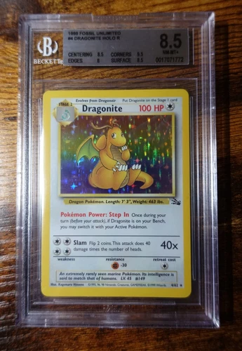 Dragonite 4/62 BGS 8.5 Fossil Set Holographic Rare Pokemon Card Graded