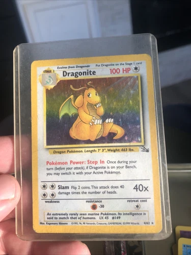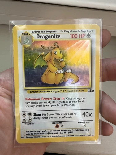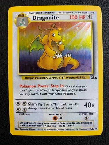 Fossil Dragonite Pokémon card Holo 4/62 1999 Unlimited