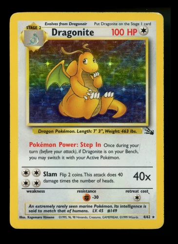 Pokemon Fossil Dragonite 4/62 Holo Rare