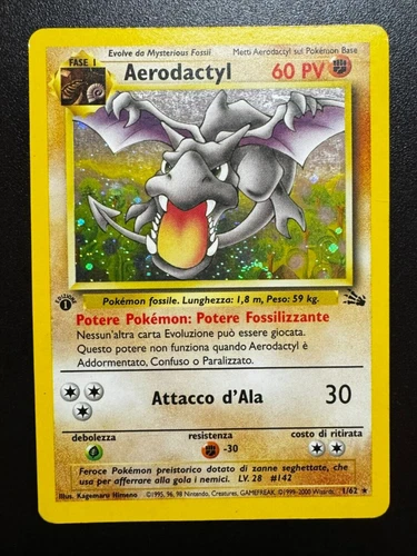 Pokemon Card Aerodactyl Holo 1st Edition 1/62 Fossil ITA Excellent Card