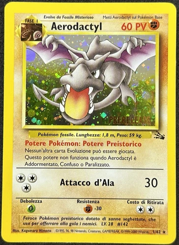 Pokemon Aerodactyl 1/62 Prerelease Fossil Holo Italian Prerealese