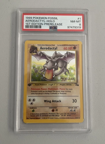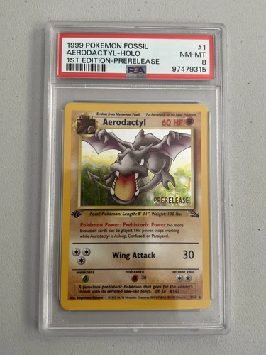 Aerodactyl 1st Edition RARE Prerelease POKEMON Card PSA 8 NM-MT FOSSIL Holo 1/62
