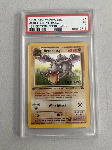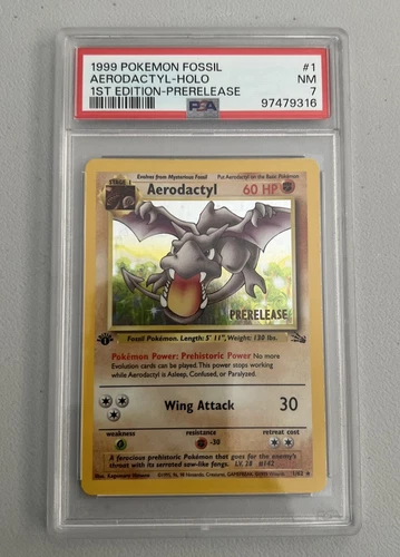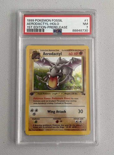 Aerodactyl 1st Edition RARE Prerelease POKEMON Card PSA 7 NM FOSSIL Holo 1/62