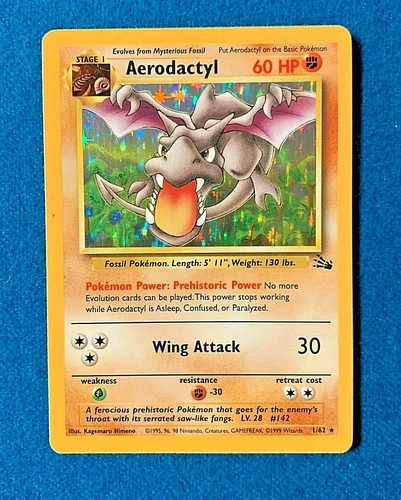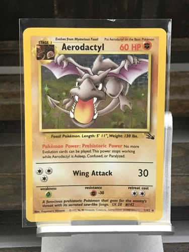 1999 Pokemon Aerodactyl Fossil 1/62 HOLO Rare Card WOTC Near Mint / Gem Mint