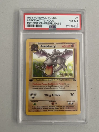 Aerodactyl 1st Edition RARE Prerelease POKEMON Card PSA 8 NM-MT FOSSIL Holo 1/62