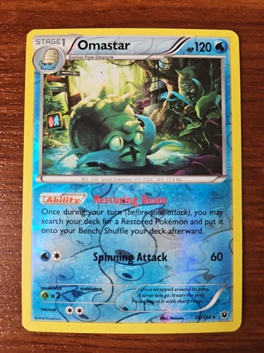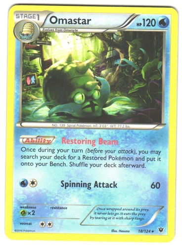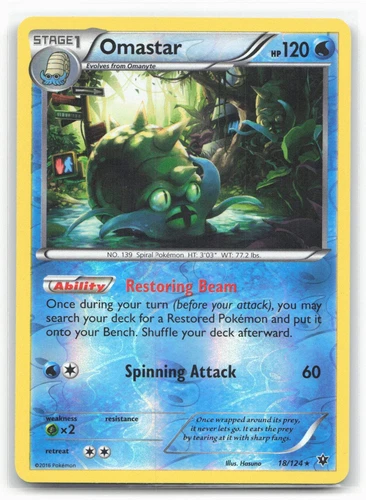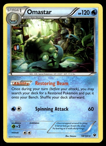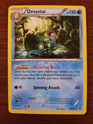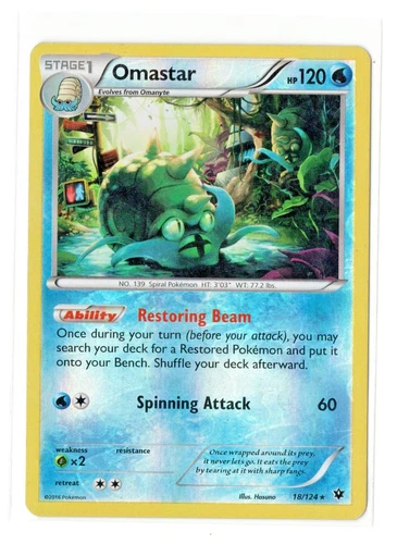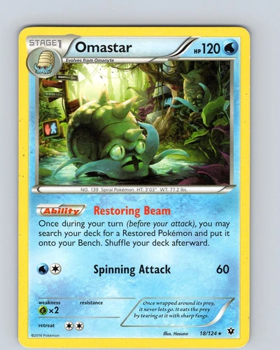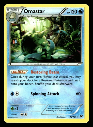 Pokémon TCG: Omastar 18/124 - Reverse Holo - XY Fates Collide Rare Card - Played