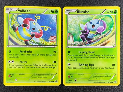 Volbeat 17/160 Common + Illumise 18/160 Primal Clash Pokemon 2015 NonHolo