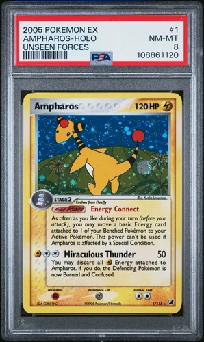 Pokemon 2005 Ampharos EX Unseen Forces 1/115 Holo Rare