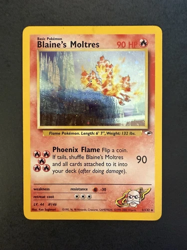 Blaine's Moltres Holo Rare WOTC Pokemon Card 1/132 Gym Set