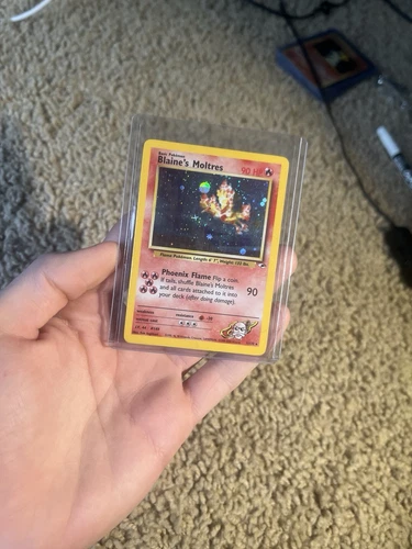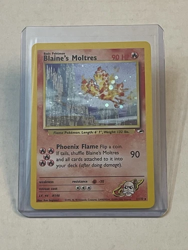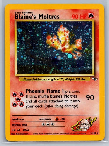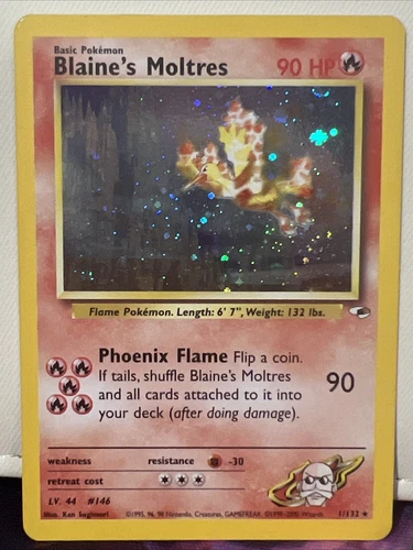 VTG Pokémon TCG Blaine's Moltres 1/132 Gym Heroes Holo Rare w/ SWIRL WOTC LOOK!!