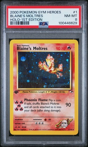 PSA 8 NM-MT Blaine's Moltres 1/132 - 1st Edition Gym Heroes 2000 Holo Rare Mint