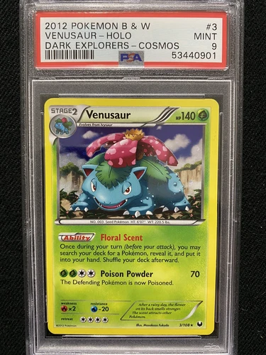 2012 Pokemon Black & White Dark Explorers Venusaur Cosmos Holo 3/108 PSA 9 Mint