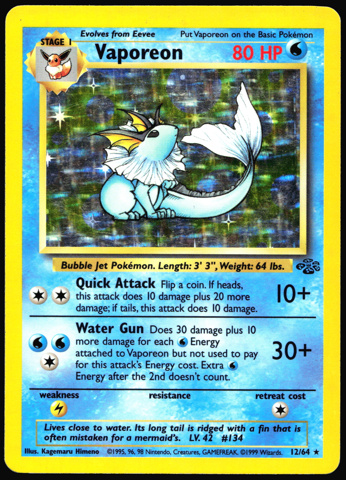 Vaporeon 12/64 Jungle Rare Holo WOTC Pokemon Card