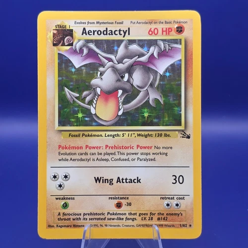 Pokémon TCG Aerodactyl Fossil 1/62 Holo Unlimited Holo Rare NM VINTAGE WOTC