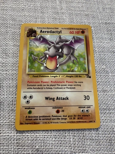 1999 Pokémon Aerodactyl Holo 1/62 – Fossil Set WOTC Vintage Rare–GMA 6.5??