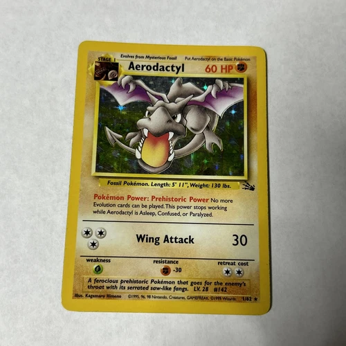 Pokemon Fossil Unlimited Aerodactyl Holo 1/62 1999 PLAYED CONDITION
