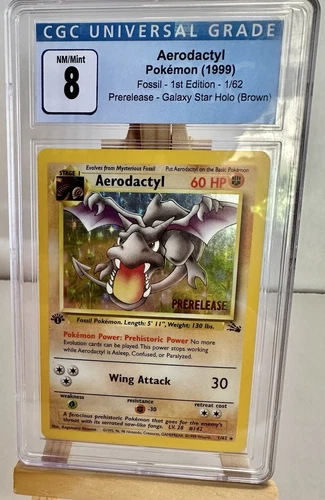 Aerodactyl 1/62 1st Ed Prerelease 1999 Fossil Pokemon Cgc 8 Galaxy Star Holo