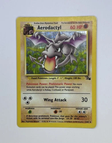 1999 Pokémon Aerodactyl Holo 1/62 – Fossil Set WOTC Vintage Rare–Lightly Played