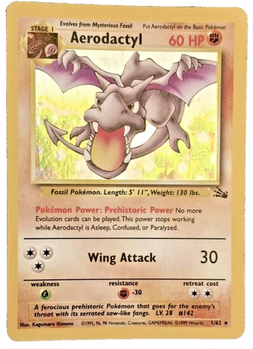 Aerodactyl 60 HP Wing Attack Pokémon 1/62 1st Edition Holo