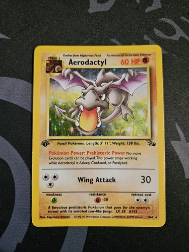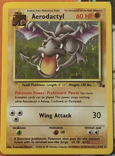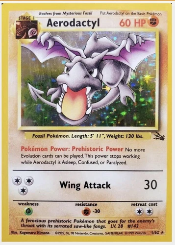 Aerodactyl 60 HP Wing Attack Pokémon 1/62 1st Edition Holo