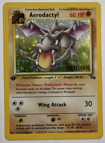 Aerodactyl 1/62 Prerelease 1st Edition Fossil Pokemon Card LP+/NM