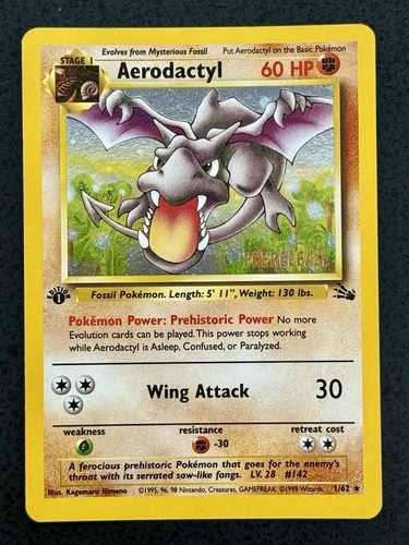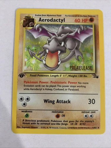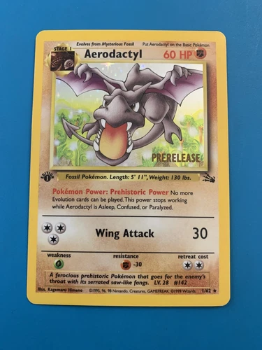 1st Edition Prerelease Aerodactyl 1/62 Fossil Set Holo Rare Vintage Pokemon Card