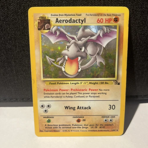 Pokemon Card Fossil Aerodactyl 1/62 Rare MP Holofoil 1999 WOTC