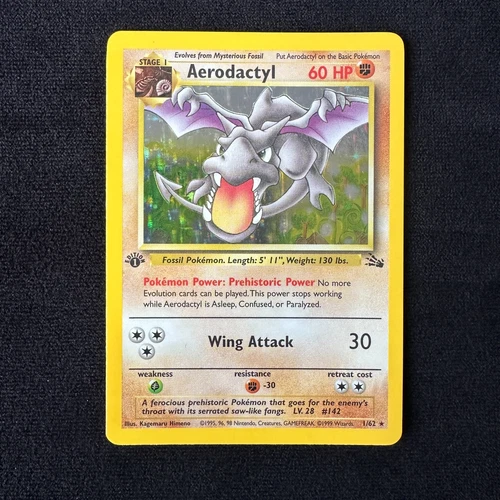 Pokemon card Aerodactyl 1/62 Fossil 1st Edition Holo Rare WOTC Light Play