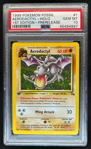 1999 Pokemon Fossil 1st Ed Prerelease Promo Aerodactyl Holo Rare 1/62 PSA 10