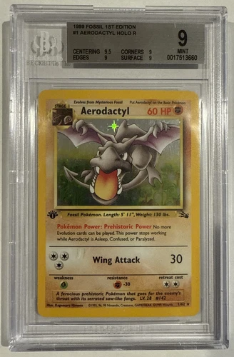 Aerodactyl Holo Pokemon Card 1999 Fossil 1/62 Graded PSA BGS 9 (9.5/9/9/9) MINT
