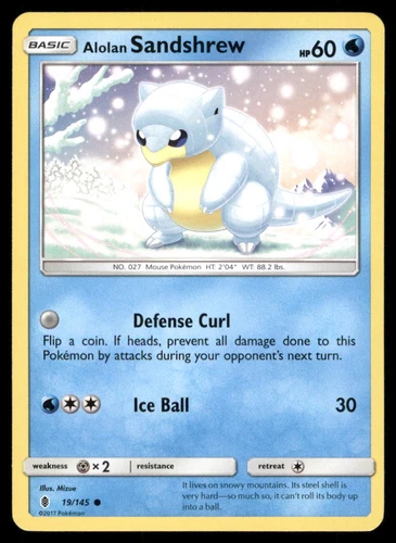 Pokemon TCG Card 2017 Sun Moon Guardians Rising Alolan Sandshrew 19/145 Non Holo