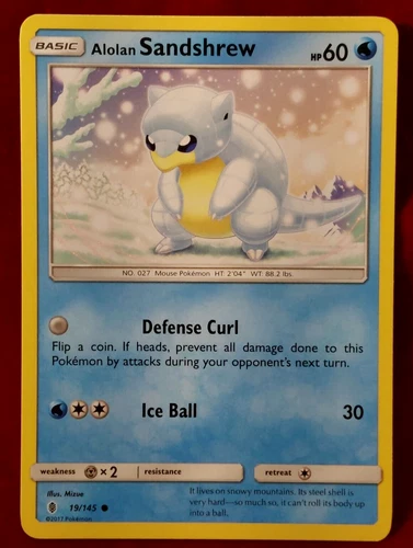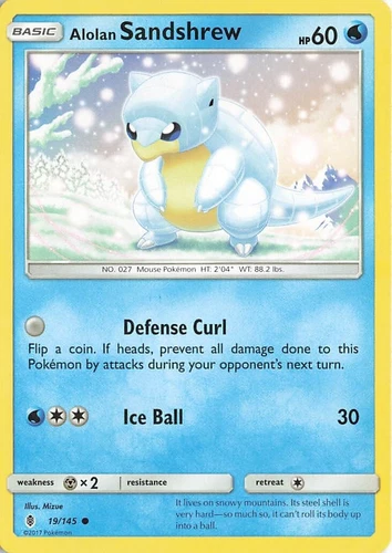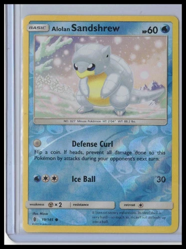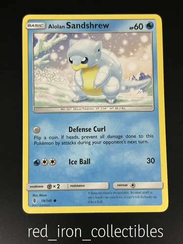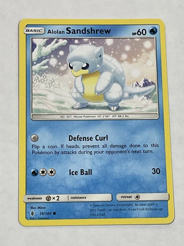 SHIPS SAME DAY Pokemon Card NM Alolan Sandshrew 19/145 Basic Water Type 2017 TCG